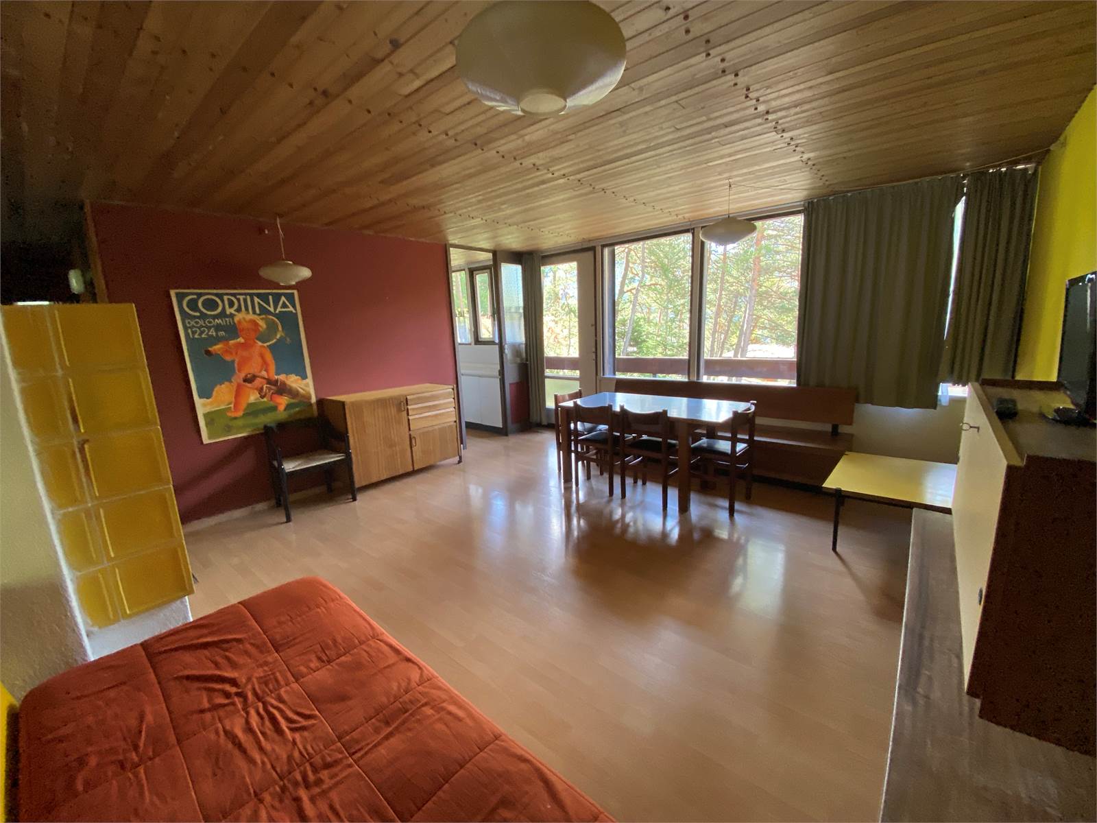 La villa è composta da una una zona giorno spaziosa e luminosa, una cucina, camera matrimoniale, camera con 3 letti e un bagno; soluzione ideale per una famiglia o per chi desidera godere di un rifugio tranquillo e lussuoso a pochi chilometri da Cortina d'Ampezzo.
